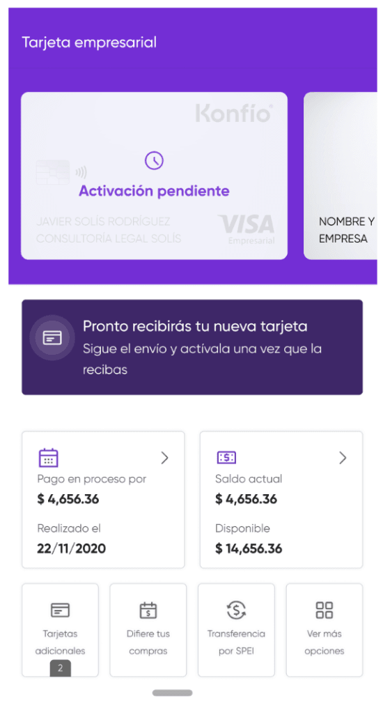 - Ingresa a tu app y dirígete a la sección “Tarjeta Empresarial”.