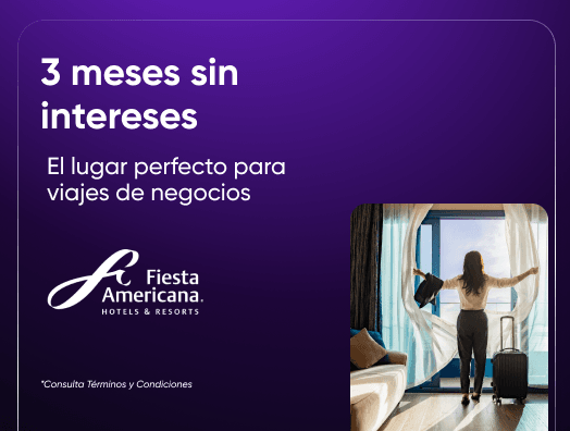 Hasta 18 meses sin intereses en tus viajes de trabajo.